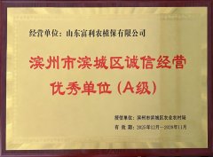 ■2026-04-14 富利农植保荣获“滨州市滨城区诚信经营优秀单位(A 级)