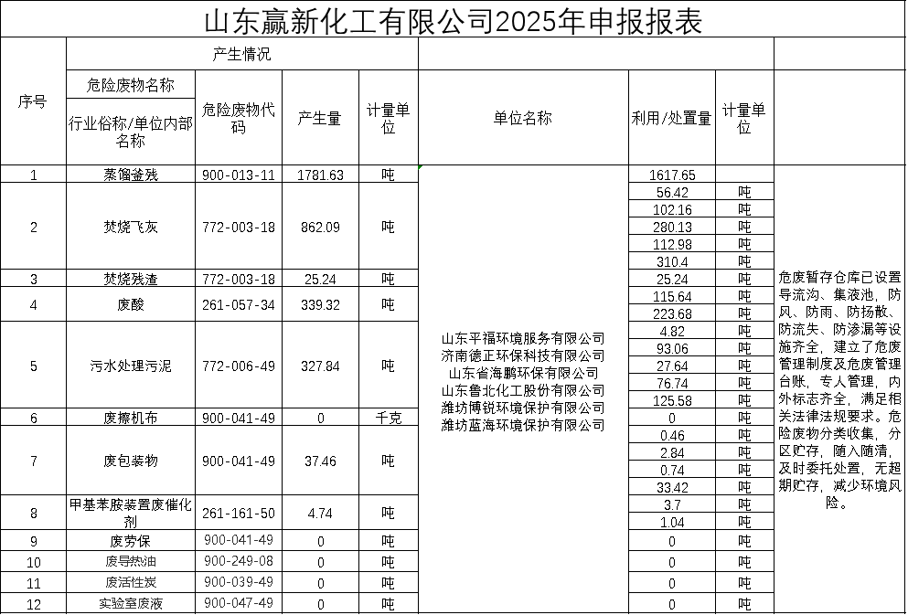 山东滨农科技有限公司2026年第1季度环境信息公示